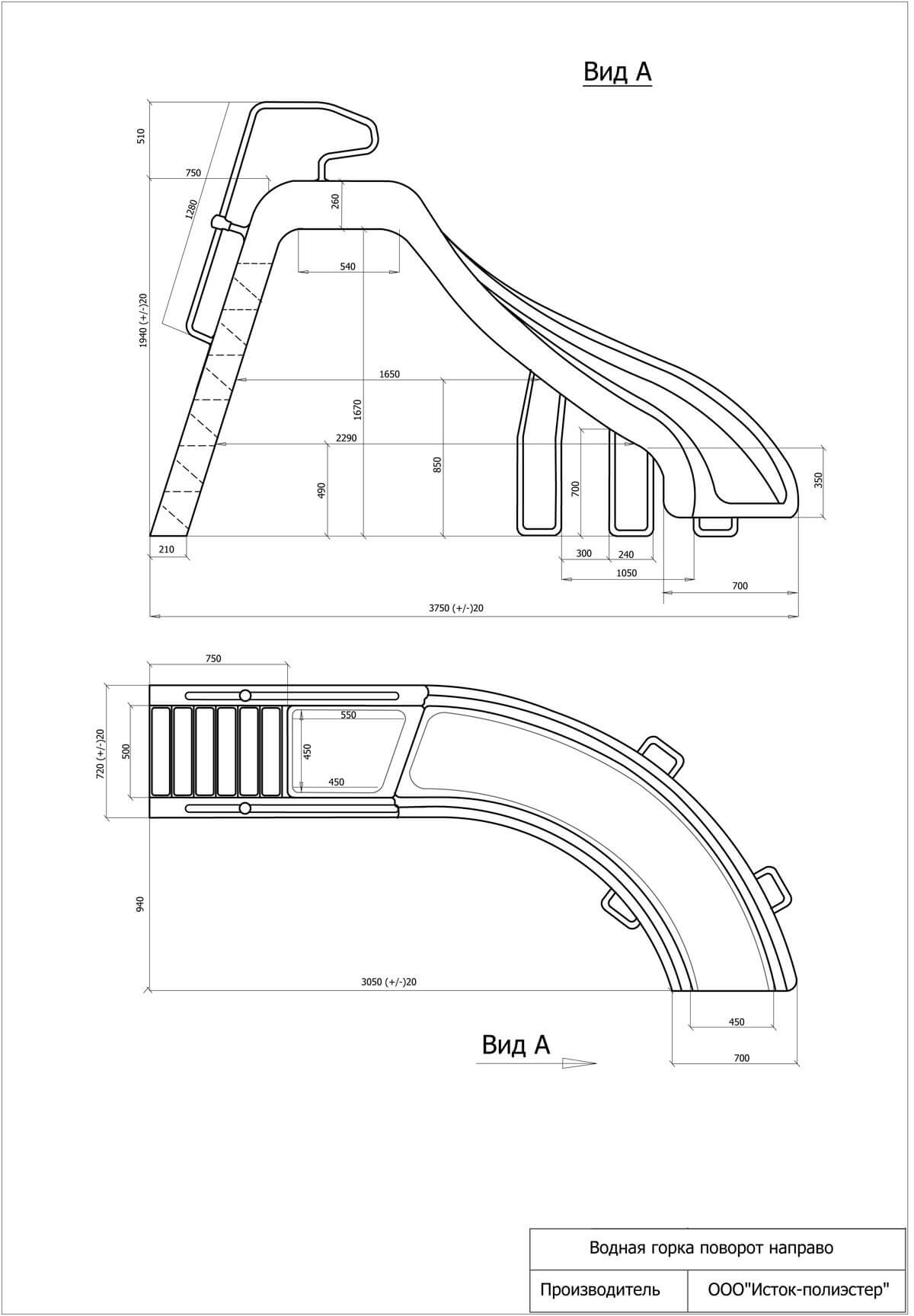 - Водная горка изготовлена из стеклопластика;
