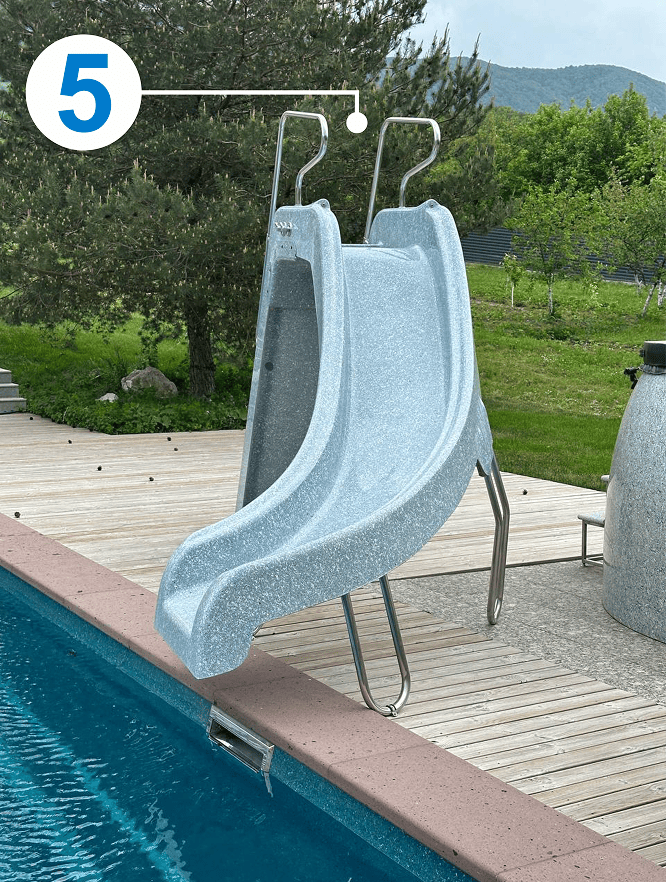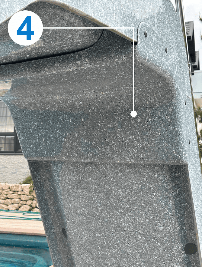 - Все элементы подачи воды, а также обратная сторона горки закрыты декоративной накладкой из стеклопластика. Подобное решение не имеет аналогов и придает эстетическую завершенность. Для оборотной стороны горки возможно выбрать любое покрытие из 17 цветов коллекции FRANMER.